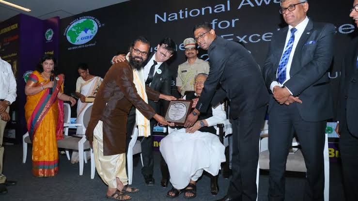 Swami Ramananda felicitated by Indian Governor Shri Biswabhushan Harichandan as “Best Telepath and astrologer in India”